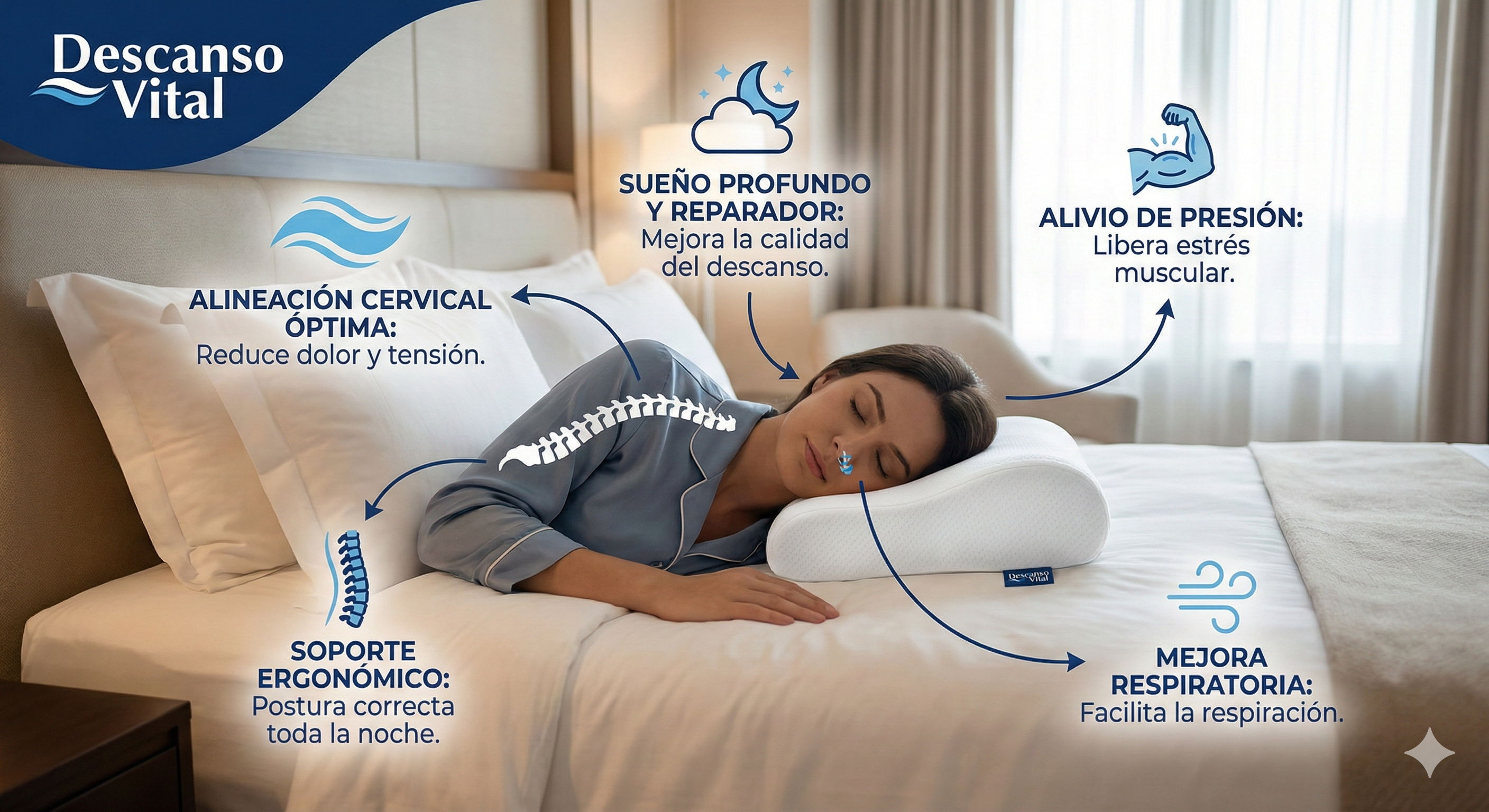 😊 Con la Almohada Cervical Descanso Vital, vas a poder dormir mejor, aliviar tensiones y despertar sin molestias desde la primera noche.